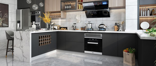 Seamless integration of ovens, cooktops, dishwashers, and rangehoods.